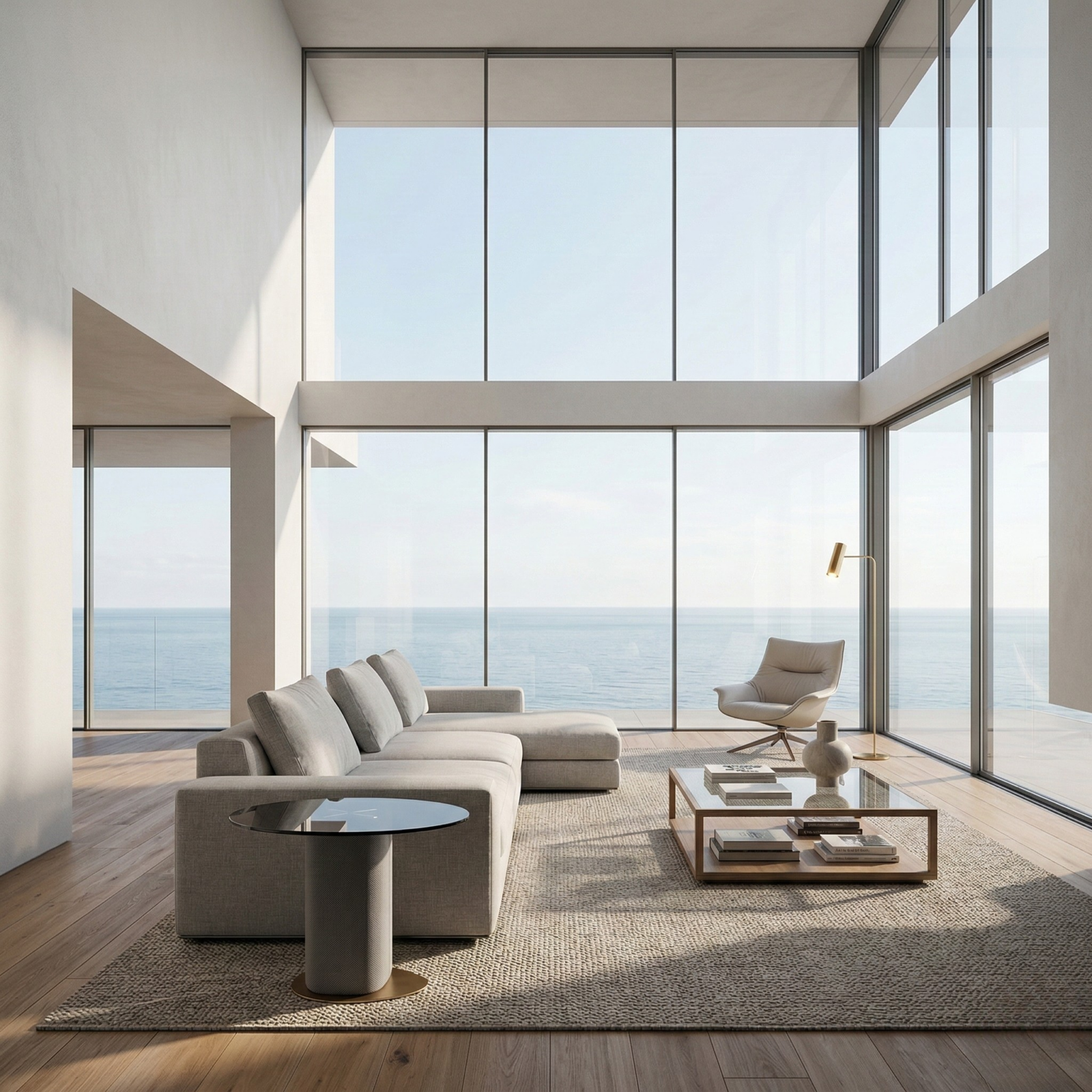 Uovo balances lightness and weight through simple geometry: an oval 10mm grey glass surface that appears to float above a clean cylindrical column. The form is quiet and architectural, designed to sit naturally beside a sofa, lounge chair, or bed.