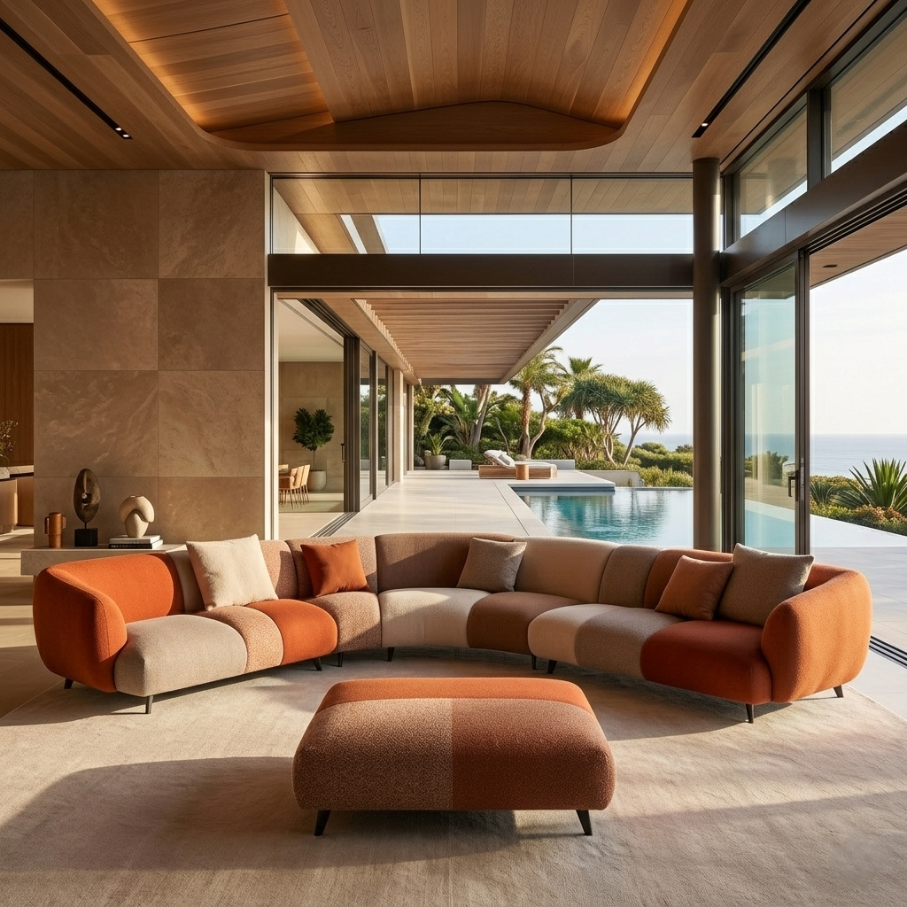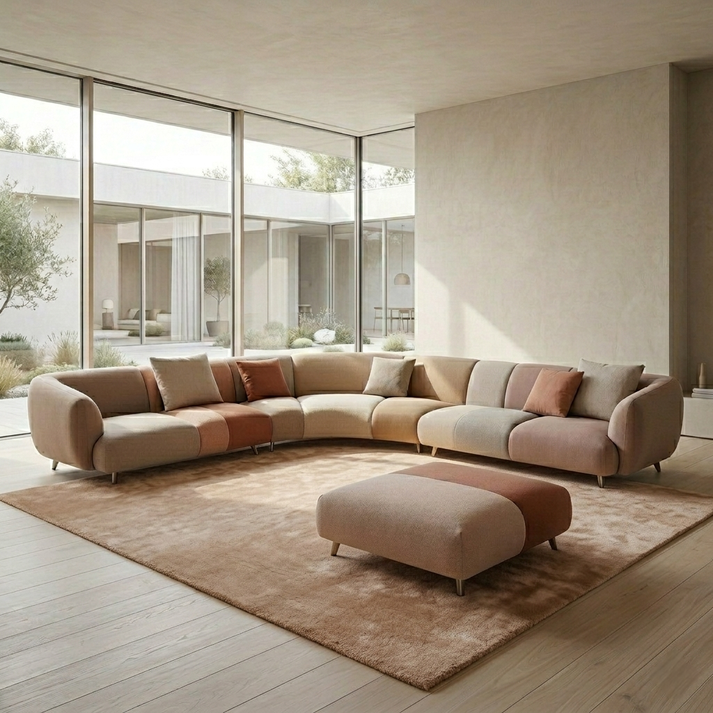 The Virello Modular Sofa is designed as a flexible seating system that combines soft geometry, modular freedom, and expressive upholstery composition. Defined by its flowing curved form and segmented upholstered panels, Virello creates a dynamic seating landscape that can adapt to a wide range of interior layouts.