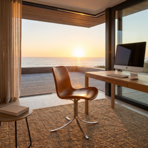 - Sangat cocok untuk ruang kerja pribadi di rumah dengan konsep hangat, tenang, dan fokus.