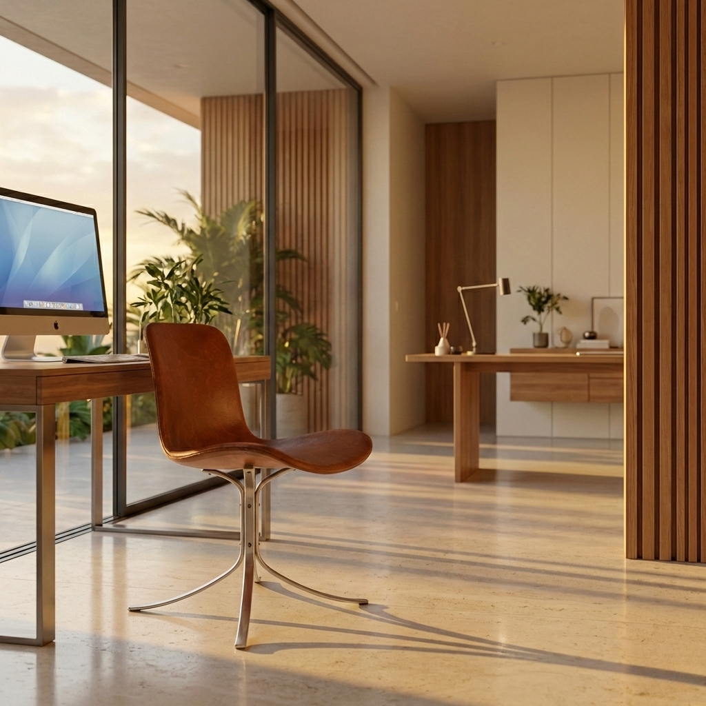 - Harmonis dipadukan dengan meja kayu solid, veneer alami, atau meja minimalis berbahan kaca dan logam.