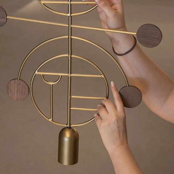 Wooden Dots series are luxury design add a contemporary aesthetic to your room. This pendant light fixture is made with finely contoured linear patterns. Suspended overhead are large dots that add character. An integrated LED brightens a dome-shaped metal shade for a striking mix of shapes and materials.