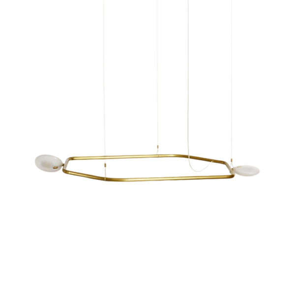 Price confirmed via WhatsAppLampu gantung horizontal dengan dua titik cahaya untuk pencahayaan merata dan seimbang. Kombinasi aluminum dan glass berwarna gold menghadirkan aksen elegan pada ruang modern.